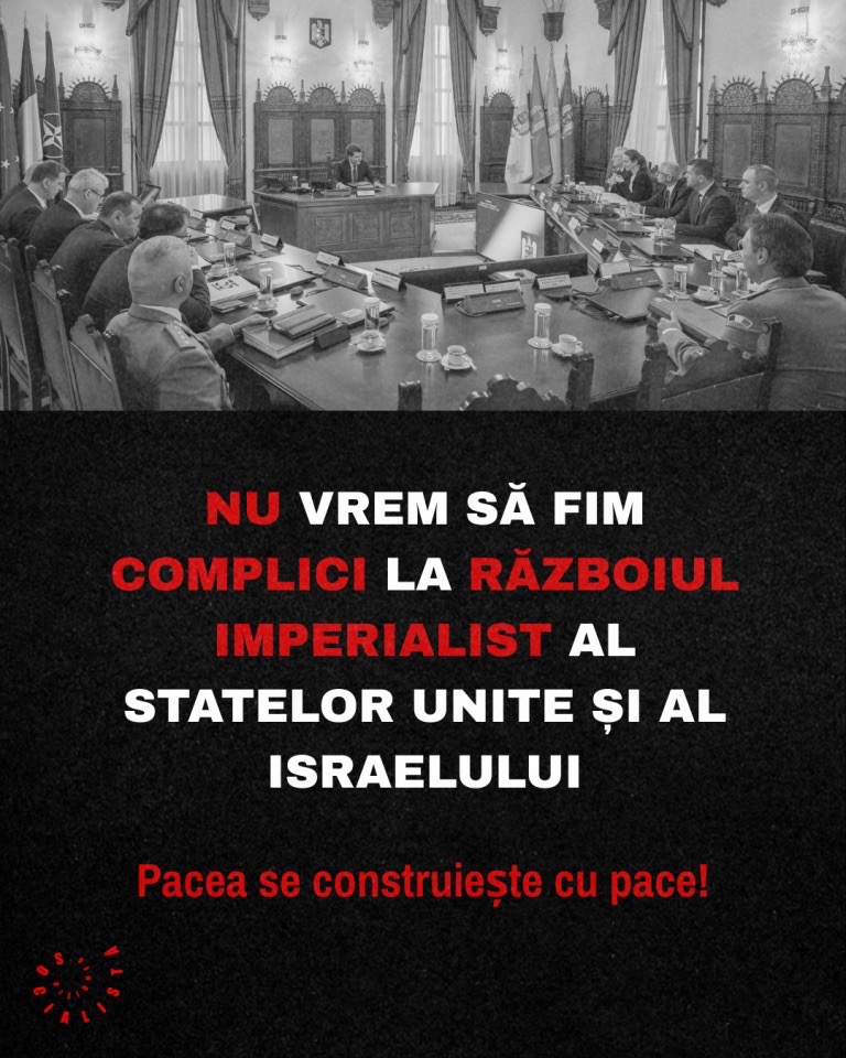 [English] Socialist Vision strongly condemns the decision of the Romanian Supreme Council for National Defense (CSAT) to authorize the deployment of US military capabilities on Romanian territory, specifically at the Mihail Kogălniceanu and Câmpia Turzii military bases. President Nicușor Dan has formally requested parliamentary approval for this measure, as well as for the deployment of Romanian forces on missions abroad throughout 2026. We call on all political parties in parliament—whether in government or opposition—to vote against this CSAT decision!